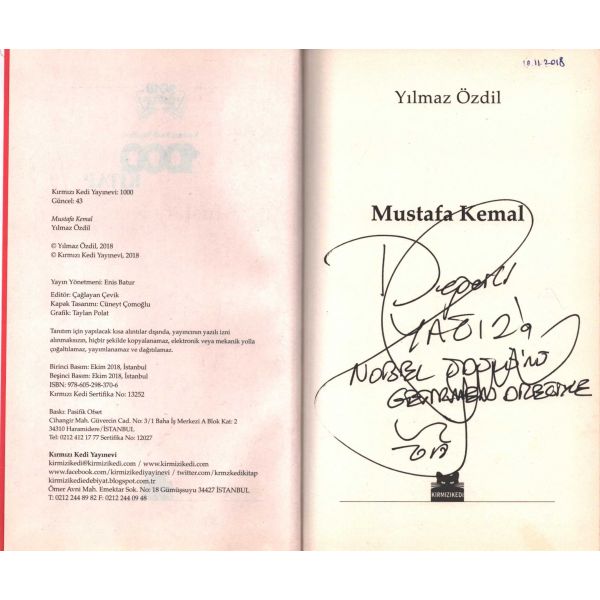 İthaf, "Değerli Yağız´a Nobel Ödülünü getirmesi dileğiyle. Yılmaz Özdil" şeklindedir.