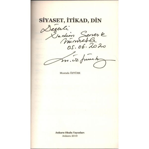 İthaf, "Değerli Nedim Şener´e hürmetle. 05.06.2020 M. Öztürk" şeklindedir.