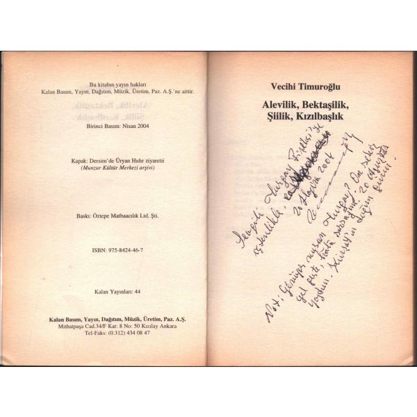 İthaf, "Güzide meslektaşım, aziz dostum Sayın ? Akyol Beyefendi´ye saygılarımla. 23 Mayıs 2007 Turgut" şeklindedir.