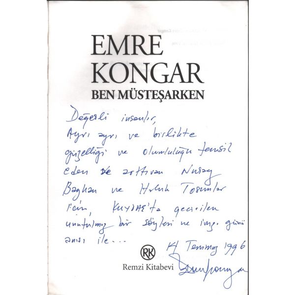 İthaf, "Değerli insanlar, Ayrı ayrı ve birlikte güzelliği ve olumluluğu temsil eden ve ? Nuray Bayhan ve Haluk Tosunlar için, KUYDAŞ´ta [Kuşadası, Yayın ve Dağıtım Anonim Şirketi] geçirilen unutulmaz bir söyleşi ve imza günü anısı ile... 14 Temmuz 1996 Emre Kongar" şeklindedir.