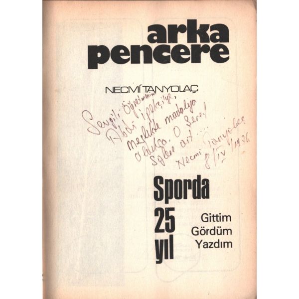 İthaf, "Sevgili Öğretmenim Abdi İpekçi´ye, meslekte madalya aldıkça, o şeref sizlere ait. Necmi Tanyolaç 8/IV/1976" şeklindedir.