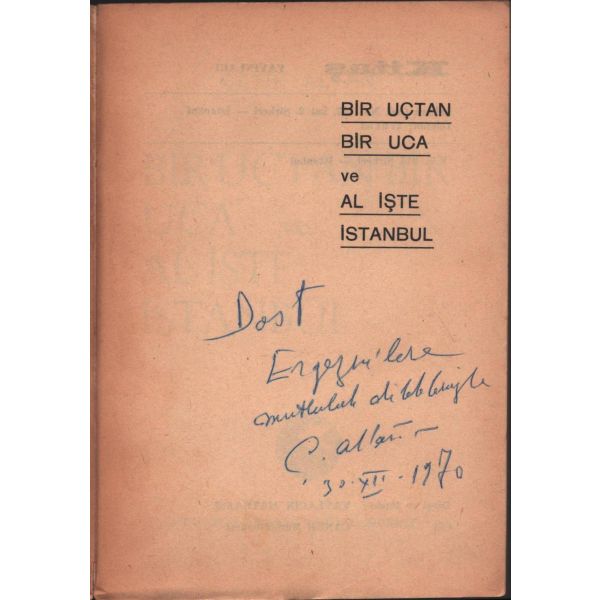 İthaf, "Dost Ergin´lere mutluluk dilekleriyle. Ç. Altan 30.XII.1970" şeklindedir.