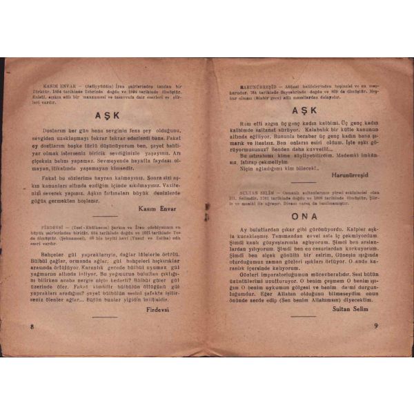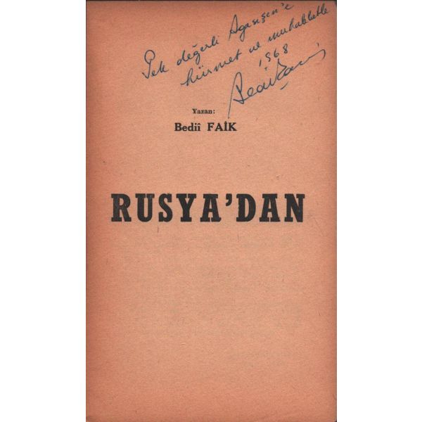 İthaf, "Pek değerli Agasi Şen´e hürmet ve muhabbetle. 1968 Bediî Faik" şeklindedir. Metin kısmı ciltten ayrılmış haliyle.