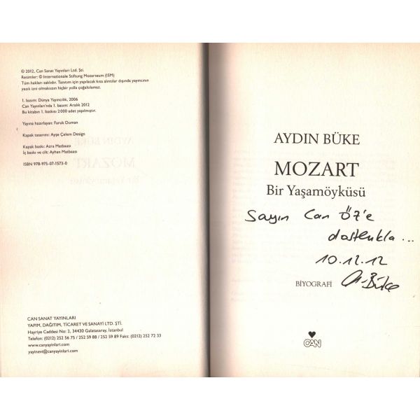 İthaf, "Sayın Can Öz´e dostlukla... 10.12.12. A. Büke" şeklindedir.
