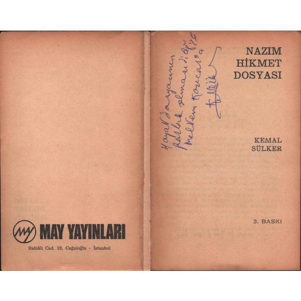 İthaf, "Teoman Altınay´a içtenlikle. 18 Mayıs 1963 Özyalçıner. İstanbul" şeklindedir. Bazı sayfaları sırttan ayrılmış haliyle.