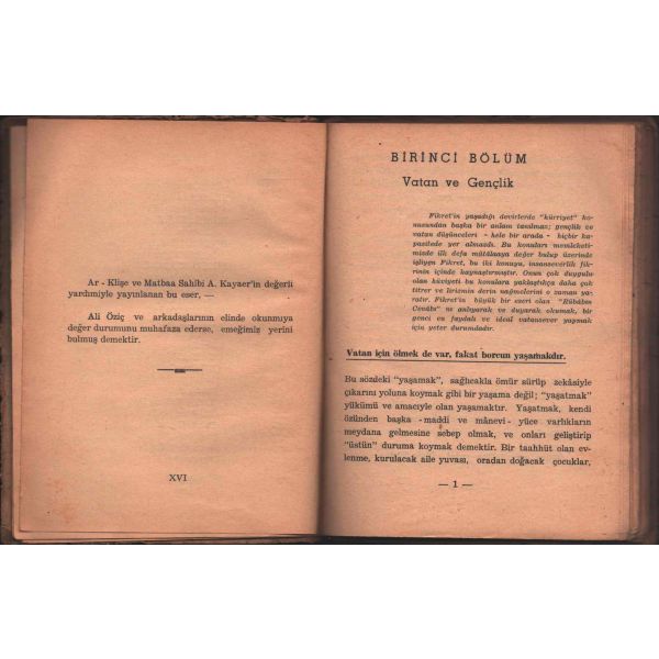 İthaf, "Muhterem Kardeşim Halis Enginer´e, derin sevgi ve saygılarımla. 4.8.958 Fazıl" şeklindedir. Bazı sayfaları sırttan ve birbirinden ayrılmış haliyle.