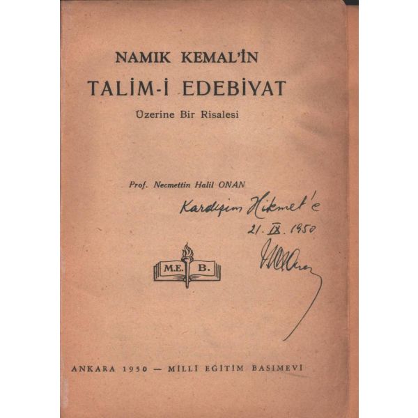 İthaf, "Dr. Tarhan´a sevgilerimle, saygılarımla. İ. H. Baltacıoğlu" şeklindedir. Sayfaları açılmamış.