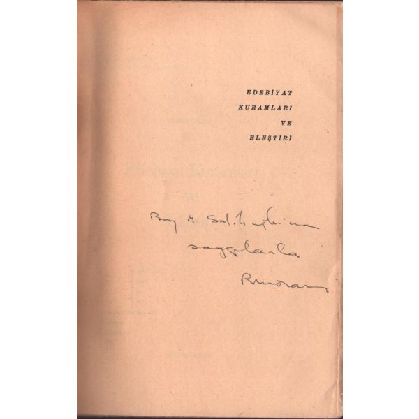 İthaf, "Sayın Suat Tümer Beyefendi´ye saygılarla. Bardakçı 1-10-1968" şeklindedir.