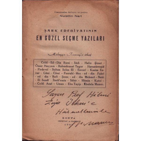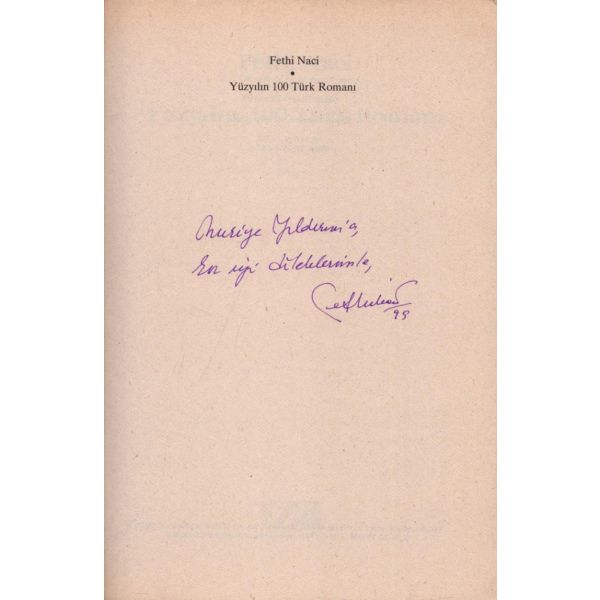 İthaf, "Nuriye Yıldıran en iyi dileklerimle. Fethi Naci 99" şeklindedir.