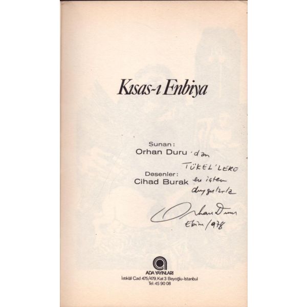 İthaf, "Orhan Duru´dan TÜKEL´lere en içten duygularla. Orhan Duru Ekim 1978" şeklindedir.