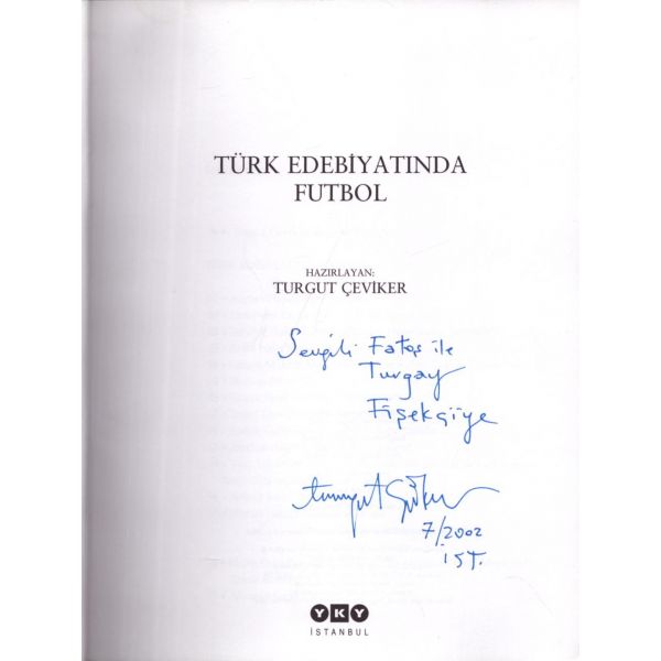 İthaf, "Sevgili Fatoş ve Turgay Fişekçiye. Turgut Çeviker 7/2002 İst." şeklindedir.