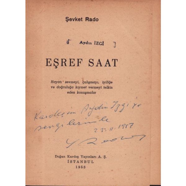 İthaf, "Kardeşim Aydın İzgi´ye sevgilerimle. 23.11.1957 Ş. Rado şeklindedir.