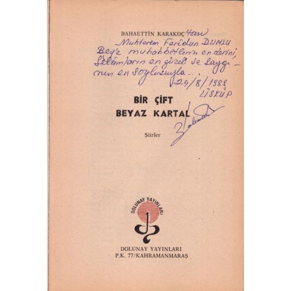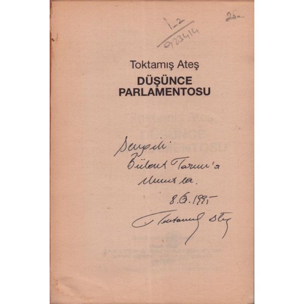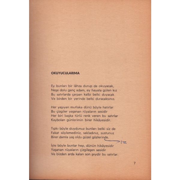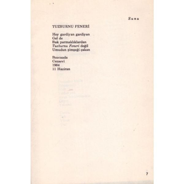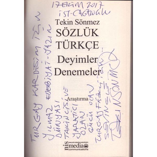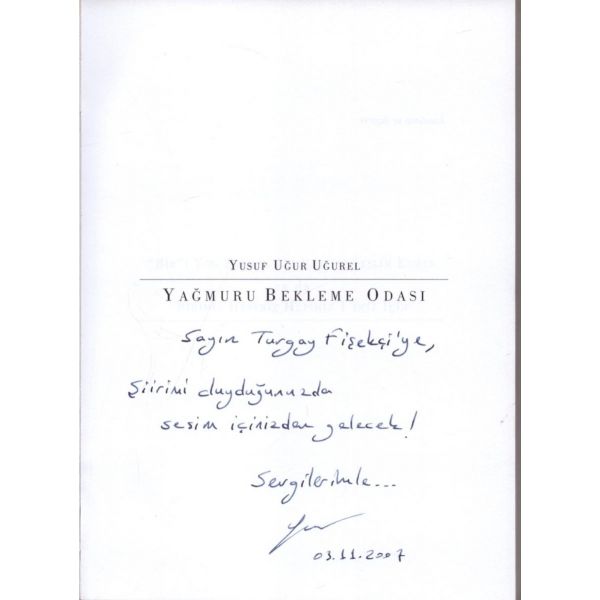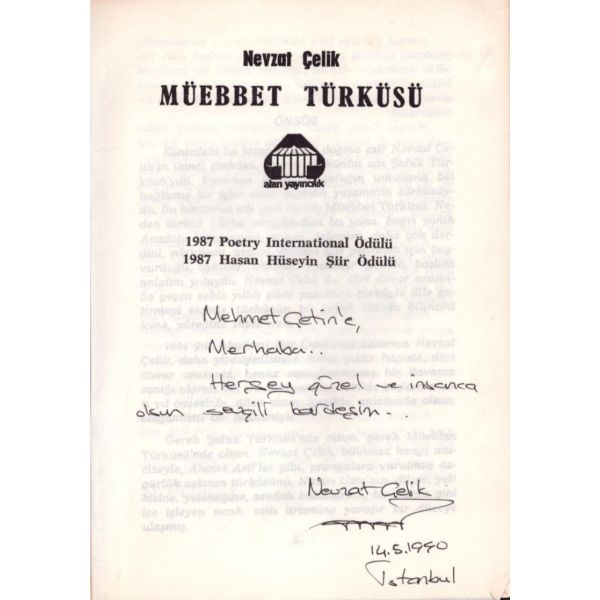 İthaf, "Turgay Kardeşim için Yılmaz Edebiyat-Yazın Dünyası Takipçisi ve Yaratıcı Ozan Gücü Olan Turgay Fişekçi için - Sevinçle. Tekin Sönmez. 17 Ekim 2017 İst. - Cağaloğlu" şeklindedir.
