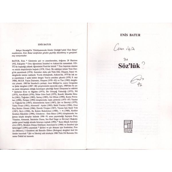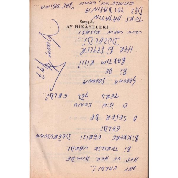 İthaf, "Hep Vardı! / Hep ve Her İşimde Terslik Vardı. / Bikkere Eğrisi Doğrusuna Geldi / O Sefer De O İşin Sonu Ters Yüz Geldi... / Soona Soona Bi De Baktım Kiii / Her Bi Şeyler Düzeldi... / Uzun Lafın Kısası / Ters Hayatın Düz Yoldaşına / Gamze´me, Gamze ´Bal´taş´ıma... Savaş Ay ´97" şeklindedir.