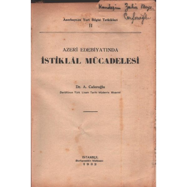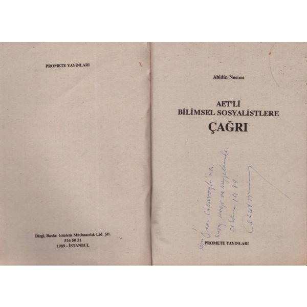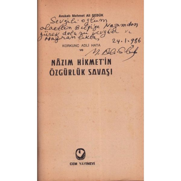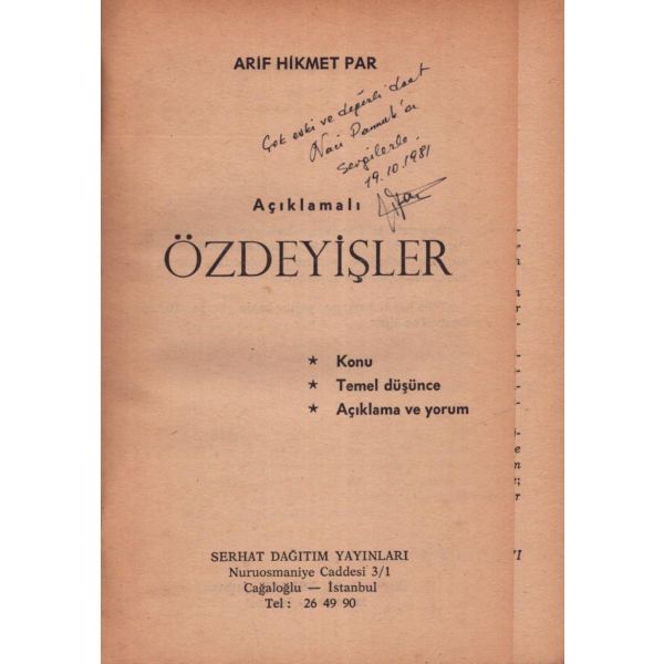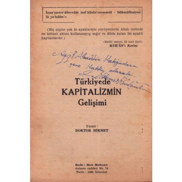 İthaf, "Aziz Alaeddin Hakgüdere gene Hakkı olarak. Dr. Hikmet Kıvılcımlı" şeklindedir.