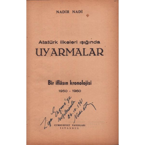 İthaf, "Ziya Ergene´ye sevgilerimle. 26.10.1961 Nadir Nadi" şeklindedir.