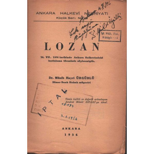 İthaf, "Ankara - 4.XI.936 Çok sayın Büyüğüme. M. H. Ürgüblü" şeklindedir.