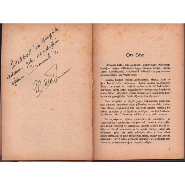 İthaf, "İstikbal´in büyük adamı pek sevdiğim oğlum Semih´e. M. Raif" şeklindedir.