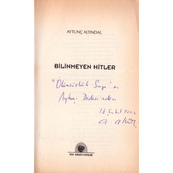İthaf, "´Ölümsüzlük Suyu´na Aytunç Dedesi´nden. 16 Şubat 2002 A. Altındal" şeklindedir.