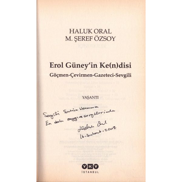İthaf, "Sevgili Sevin? Hocama en derin saygı ve sevgilerimle. Haluk Oral 16 Şubat 2007" şeklindedir.