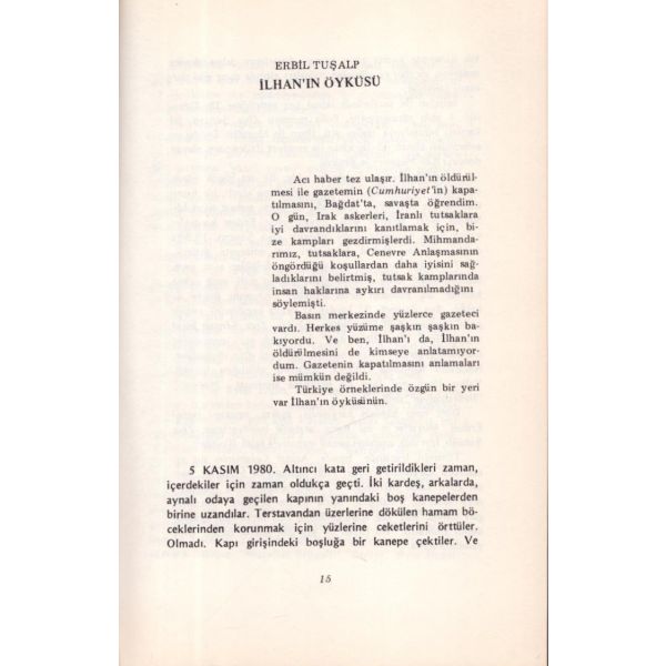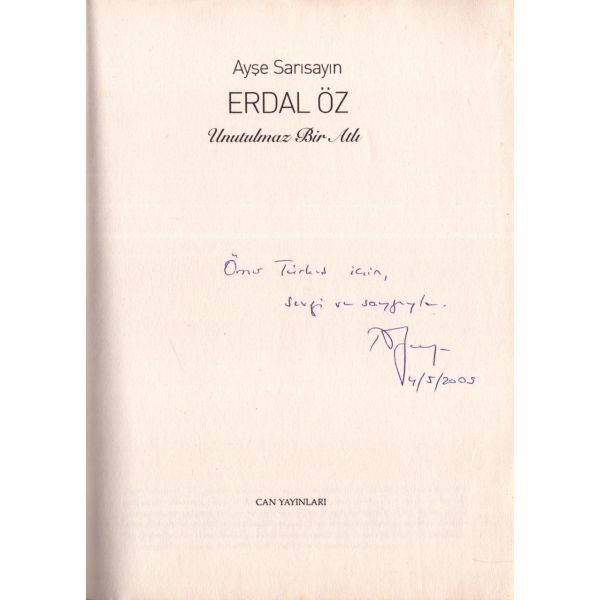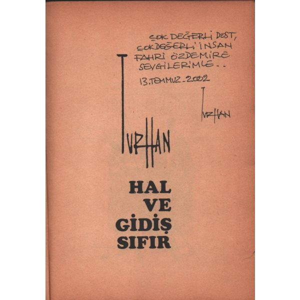 İthaf, "Çok değerli dost, çok değerli insan Fahri Özdemire sevgilerimle.. 13 Temmuz 2002 Turhan" şeklindedir.