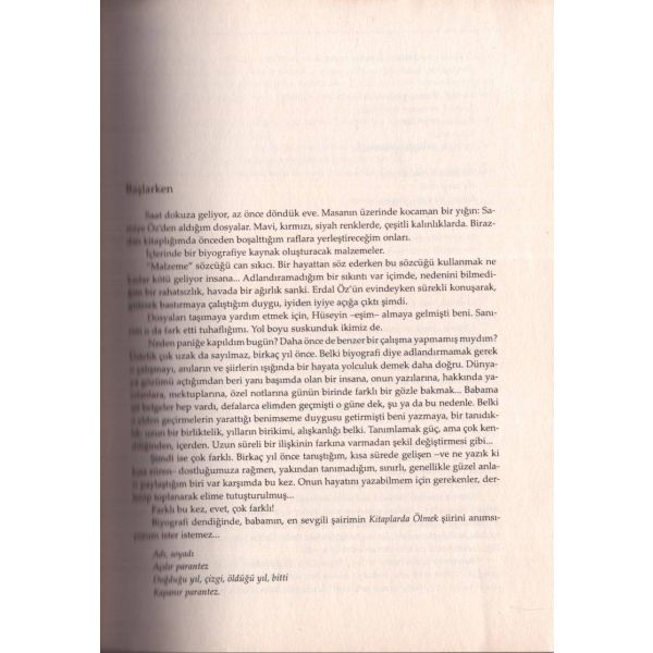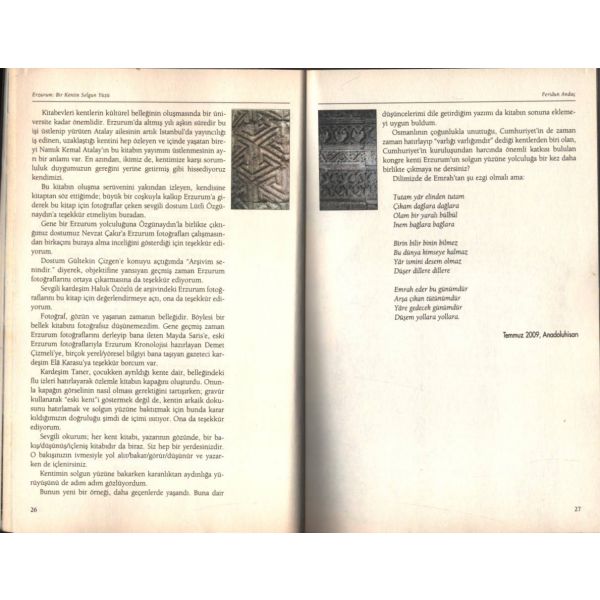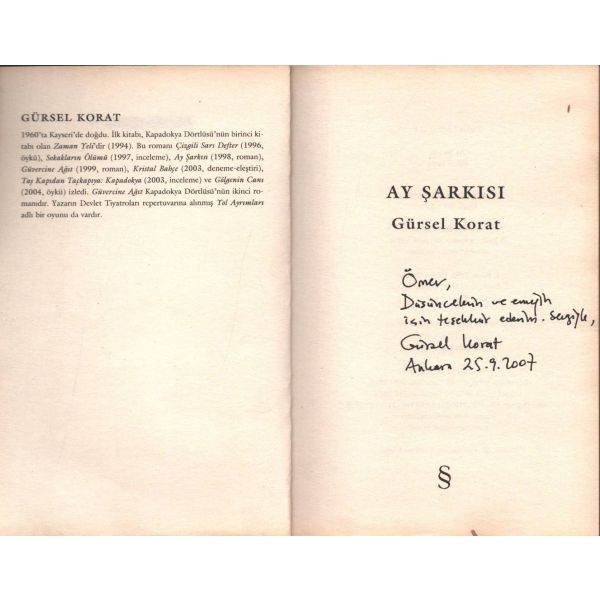 İthaf; "Ömer, düşüncelerin ve emeğin için teşekkür ederim. Sevgiyle. Ankara 25.9.2007" şeklindedir.