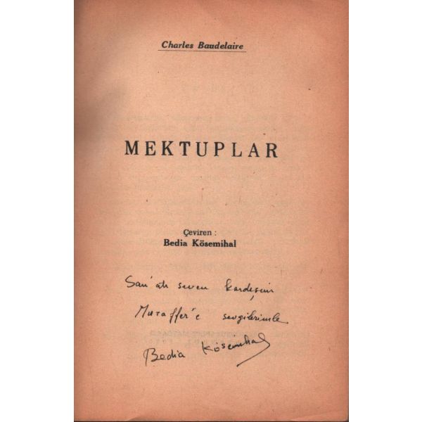 İthaf, "Kardeşim Ferid´e saygı ve sevgilerimle. 5/4/1949" şeklindedir.
