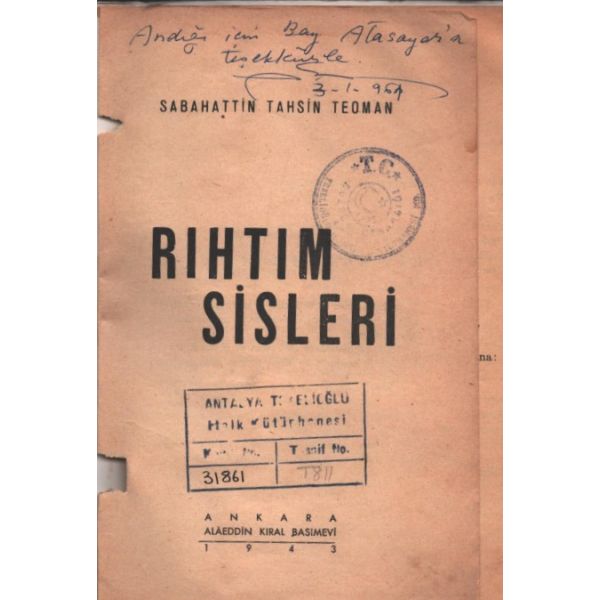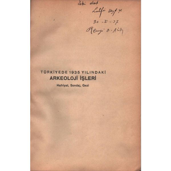 İthaf, "Eski dost Lütfü Beyf.ye 30-V-37 Remzi O. Arık" şeklindedir.