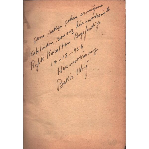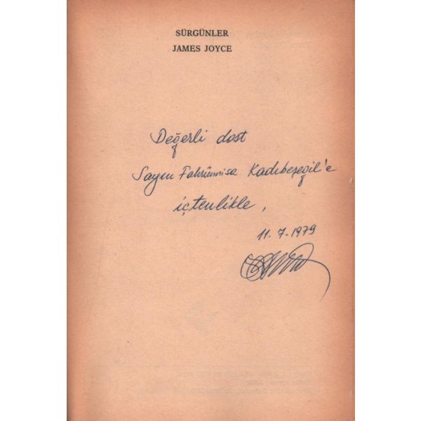 İthaf; "Değerli dost sayın Fahrinnisa Kadıbeşgil´e içtenlikle, 11.7.1979" şeklindedir.