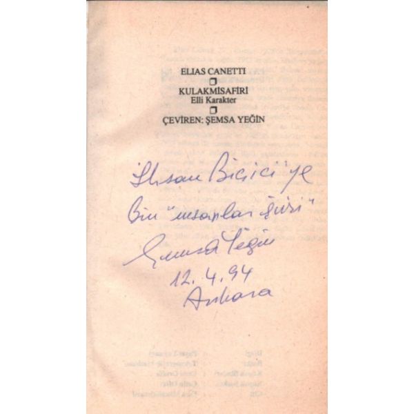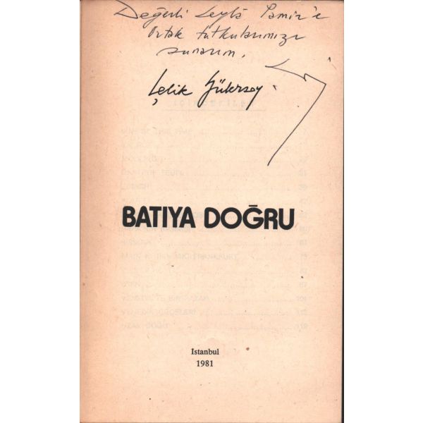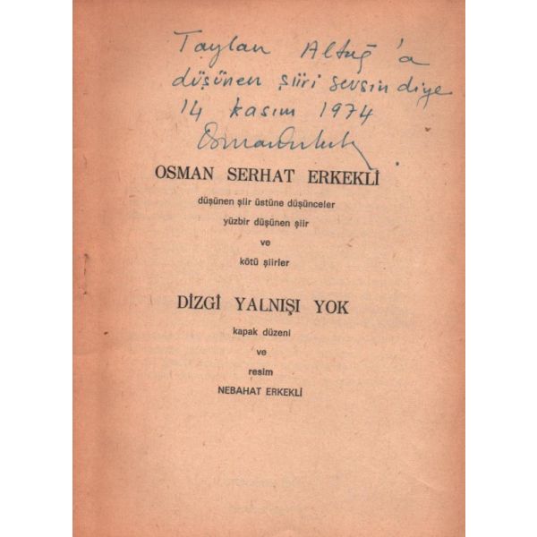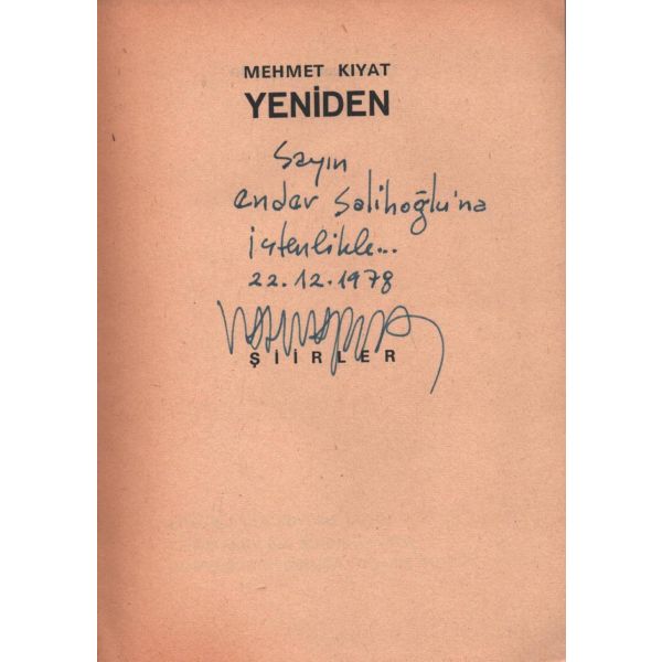 İthaf; "Sayın Ender Salihoğlu´na içtenlikle.. 22.12.1978" şeklindedir.