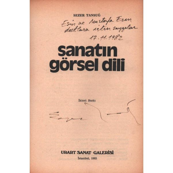 İthaf, "Esin ve Mustafa Eren dostlara içten saygılar. 17.11.1982" şeklindedir.