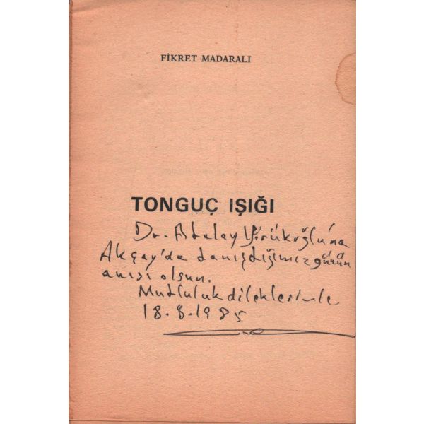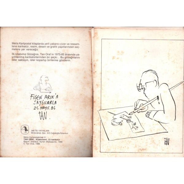 İthaf, "Figem Arık´a saygılarla. 24 Mayıs 86 Tan" şeklindedir.