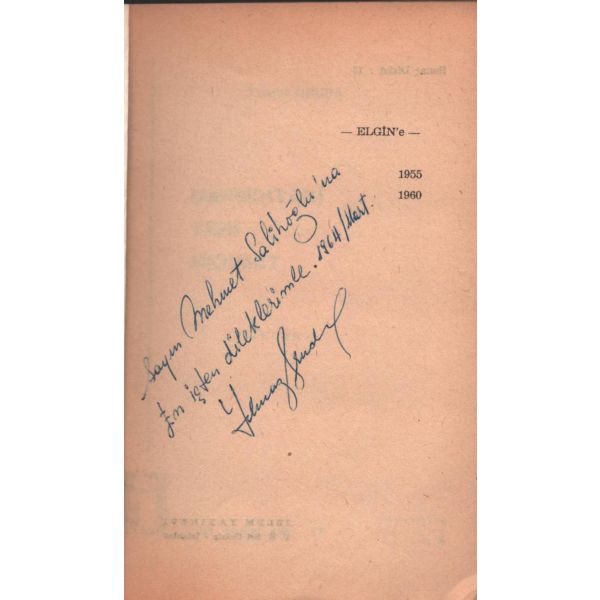 İthaf; "Sayın Mehmet Salihoğlu´na en içten dileklerimle. Mart 1964" şeklindedir.