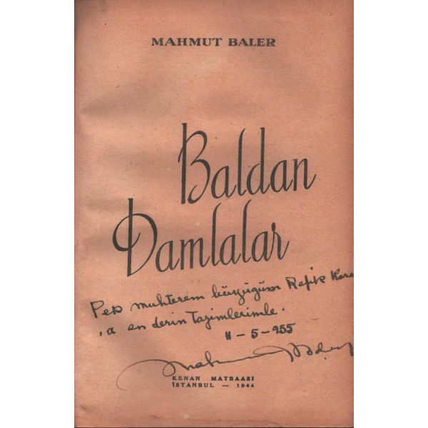 İthaf, "Sevgili Üstat Lütfu Topbaşa. 19/1/946" şeklindedir.