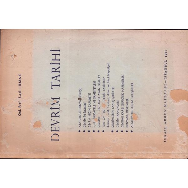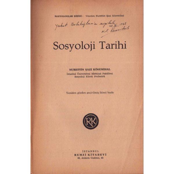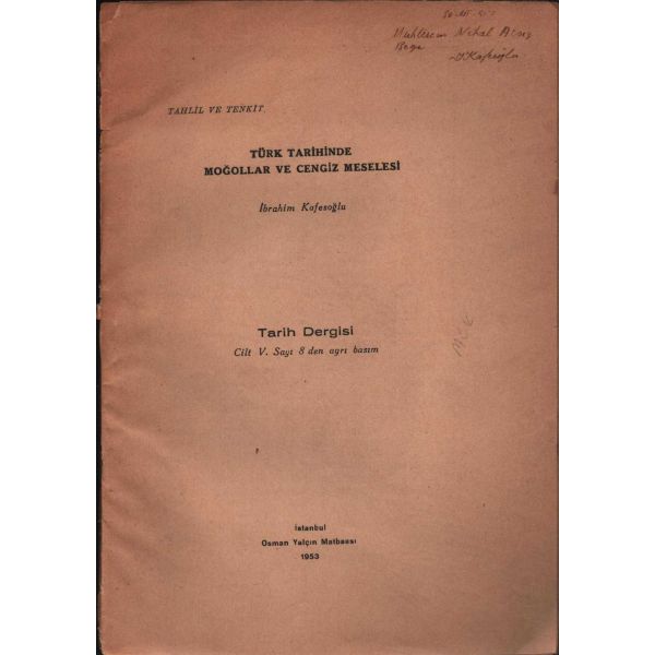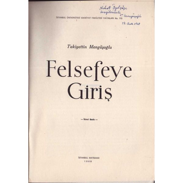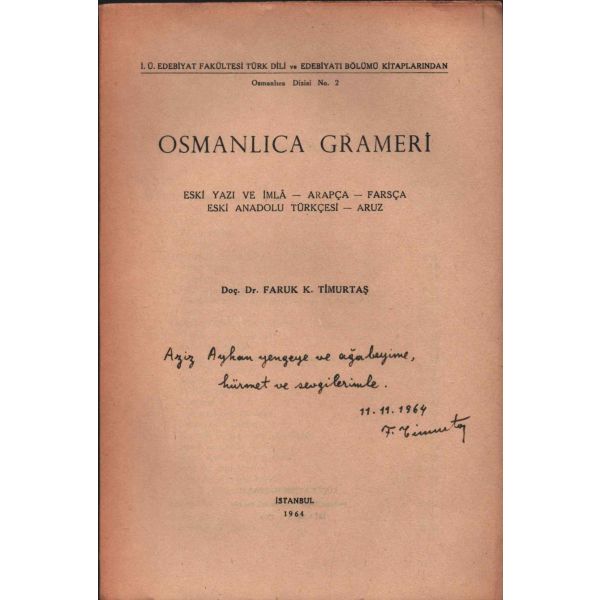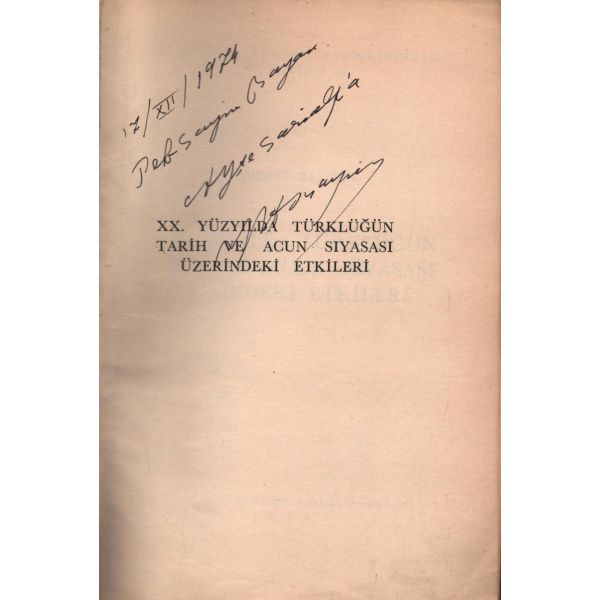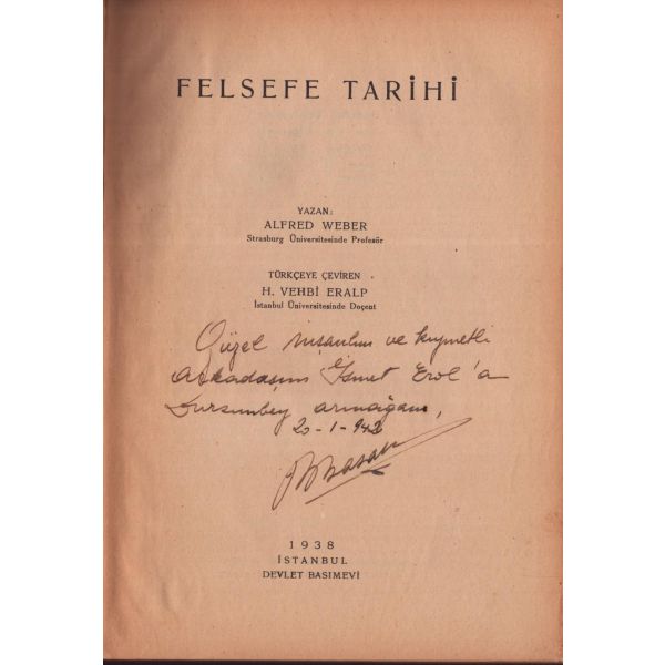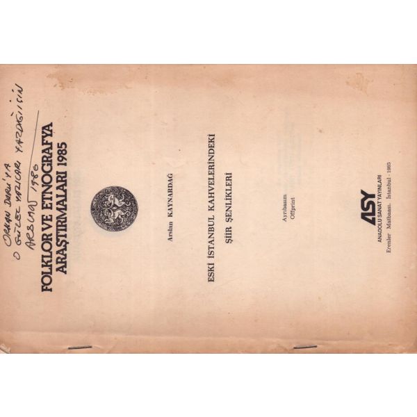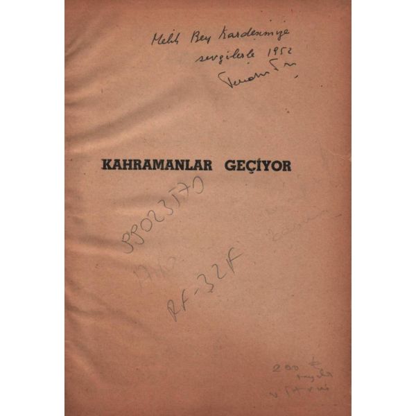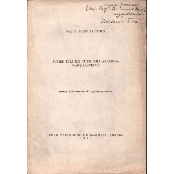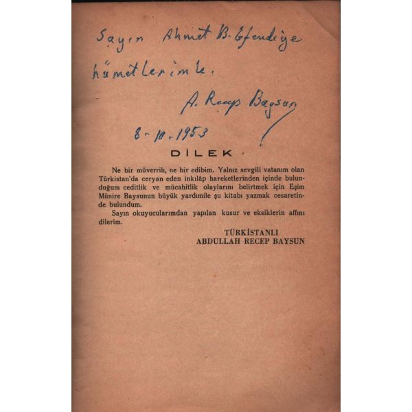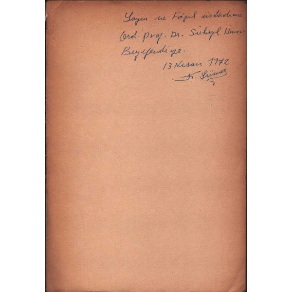 İthaf, "Sayın Bay R. [Robert] Anlıegger´e hurmetlerimle. 10.7.1956 Feridun Dirimtekin" şeklindedir. Son sayfa ve arka kapak ciltten ayrılmış, sırtı yıpranmış haliyle.