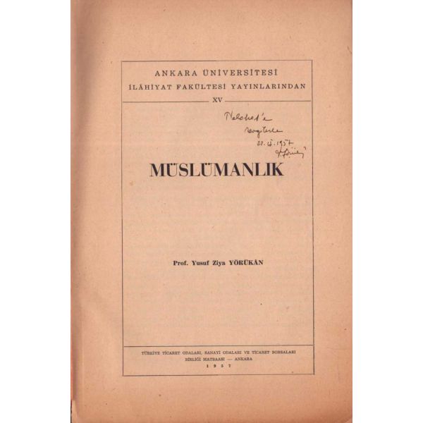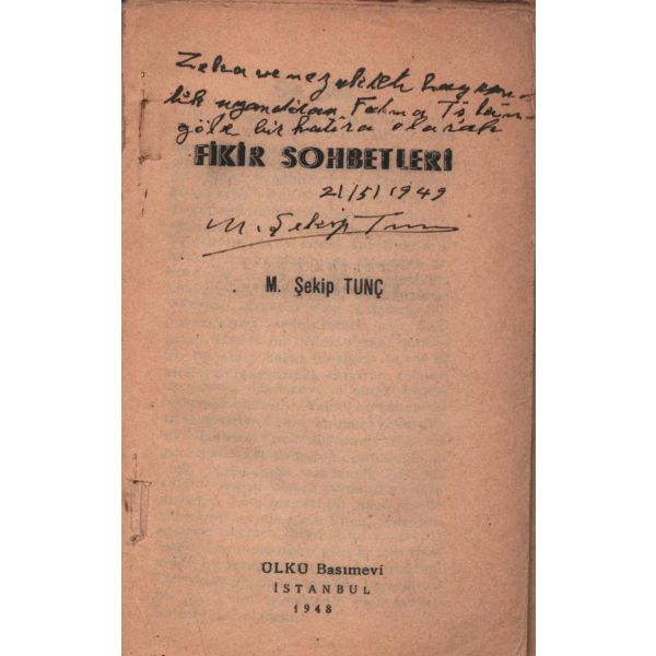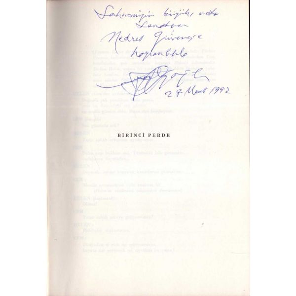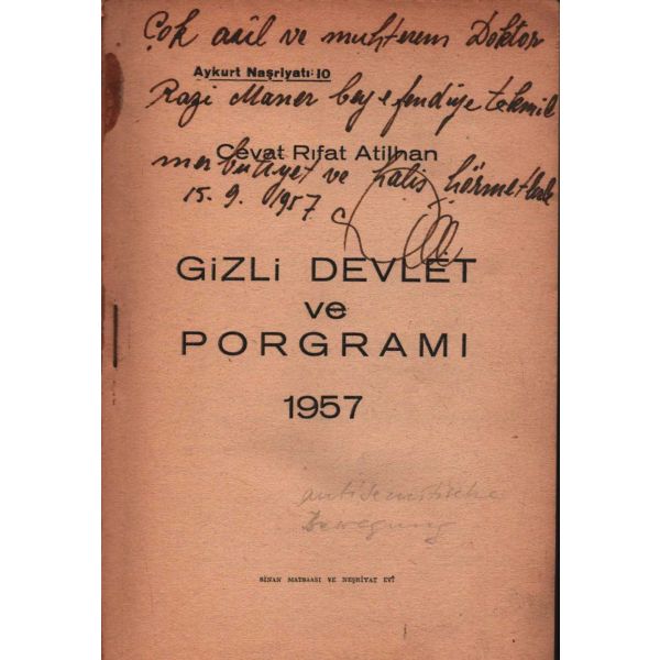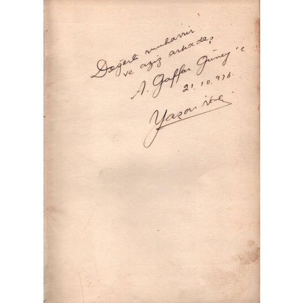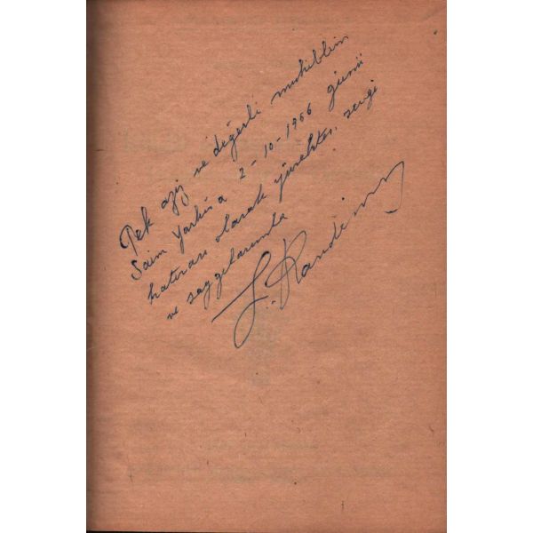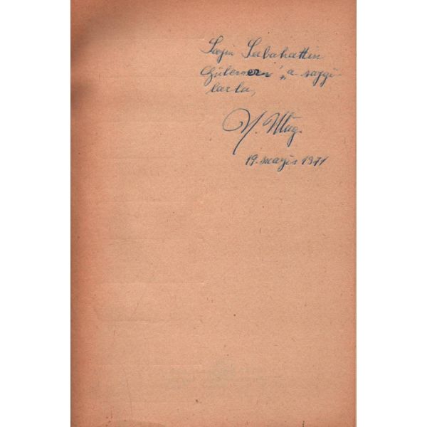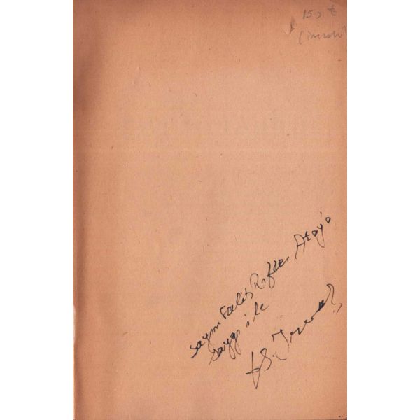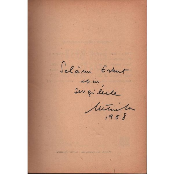 İthaf, "Çok asil ve muhterem Doktor Razi Maner beyefendiye tekmil ...yet ve halis hürmetlerle. 15.9.1957 Atilhan" şeklindedir. Son sayfaları açılmamış.