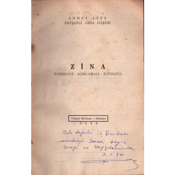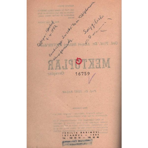 İthaf, "Çok aziz dostum Kemal Özçoban´a derin sevgilerimle. 6.7.953 Zahuri" şeklindedir. Metin kısmı sırttan ve -fasiküller halinde- birbirinden ayrılmış haliyle. Sayfaları açılmamış.