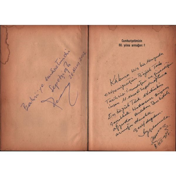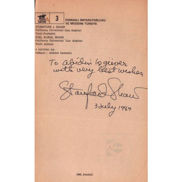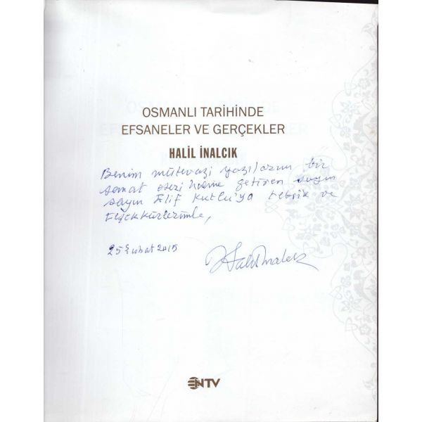 İthaf, "Benim mütevazi yazılarımı bir sanat eseri haline getiren sayın Elif Kutlu´ya tebrik ve teşekkürlerimle. 25 Şubat 2015 Halil İnalcık" şeklindedir. Ön ve arka kapak ortadan kırık haliyle.