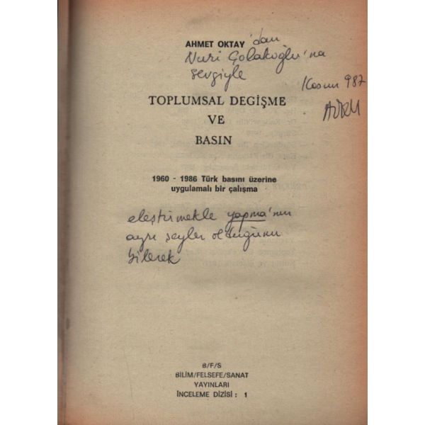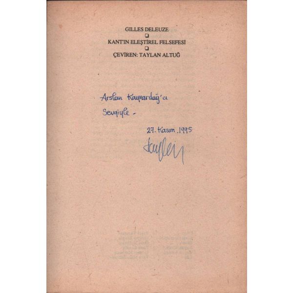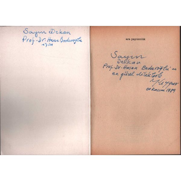 İthaf, "Aziz meslektaşım Mümtazer Türköne´ye sahadaşlığın verdiği keyif ve heyecanla. 9 Aralık 94 İsmail Kara" şeklindedir. Ön ve arka kapağı ortadan kırık, ön kapak içi ve ilk sayfası renkli kalemle karalanmış haliyle.