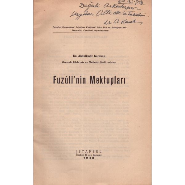 Şairin, Fuzuli’nin ünlü murabbasından bir bölümü de kullanarak -“Şahap Sıtkı! ´Sana kaldı mürüvvet, senden özge hiç kimsem yok / Gözüm canım efendim sevdiğim devletli sultanım!´ 13.IX.946 Cahit Külebi" ifadeleriyle yazar Şahap Sıtkı İlter’e ithaf ettiği bu ilk kitabı, içinde yine Külebi tarafından yapılan düzeltmelerin olduğu, iki ünlü edebiyatçımızın dostluğunun ve aynı zamanda edebiyat öğretmenliği de yapmış Külebi’nin Divan edebiyatına olan sevgisinin kanıtı, özel bir nüshadır.