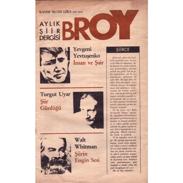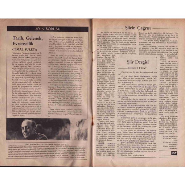 Dergi içerisinde Cemal Süreya, Memet Fuat, Refik Durbaş, Cevat Çapan, Turgay Fişekçi, Fethi Naci, Tomris Uyar, Nurer Uğurlu, Turgut Uyar, Enver Ercan, Afşar Timuçin vd. şair, yazar ve eleştirmenlerin şiir ve yazıları yer almaktadır.