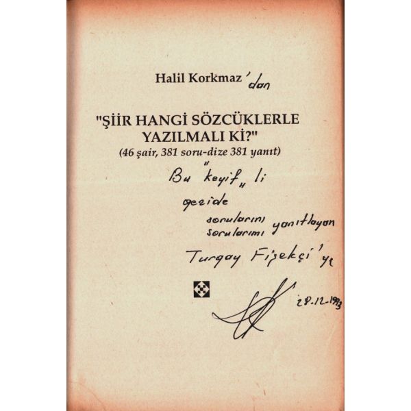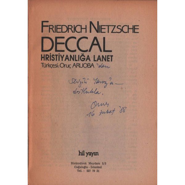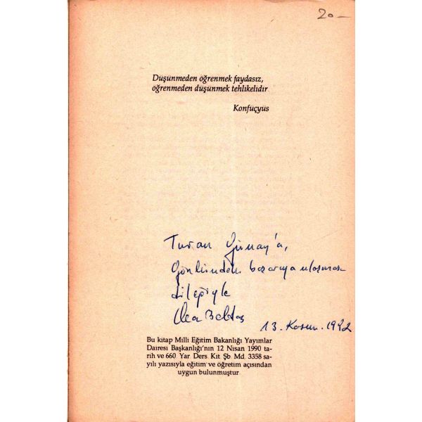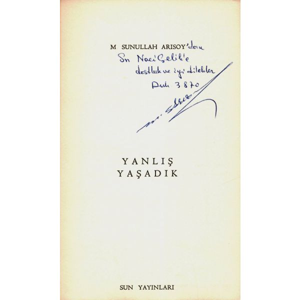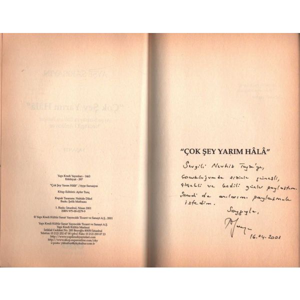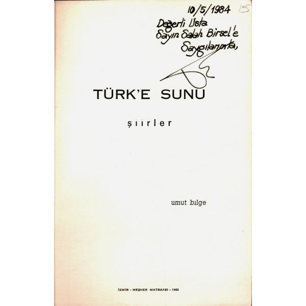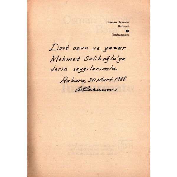 İthaf, " Salah Birsel´e en iyi dileklerimle, Şubat ´95" şeklindedir.