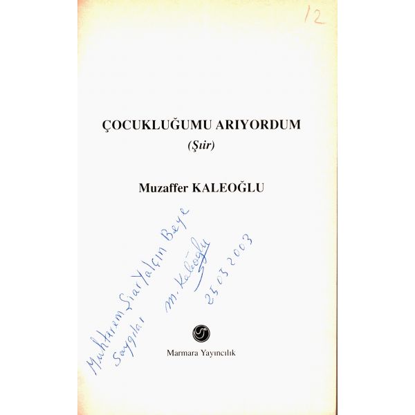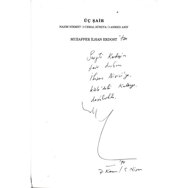 İthaf, "Muzaffer İlhan Erdost´tan Sevgili Kardeşim şair dostum İhsan Biçici´ye, kale´deki Kaleye, dostlukla. 7 Kasım ´94" şeklindedir.