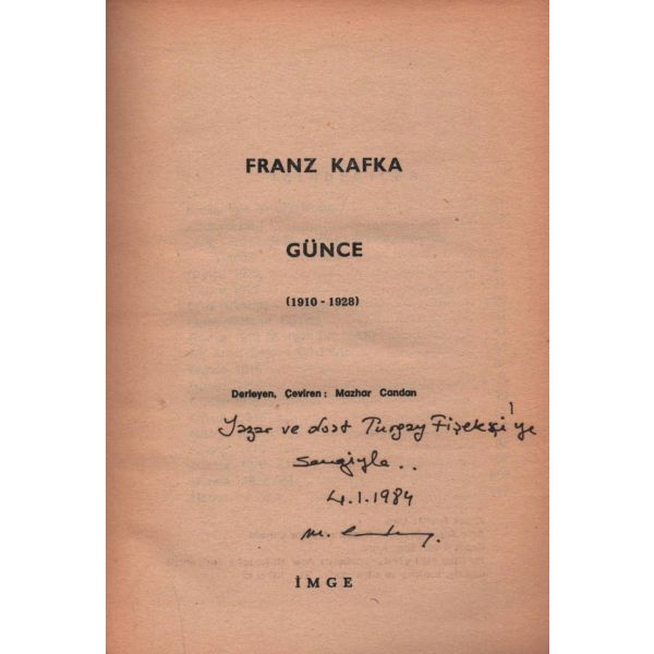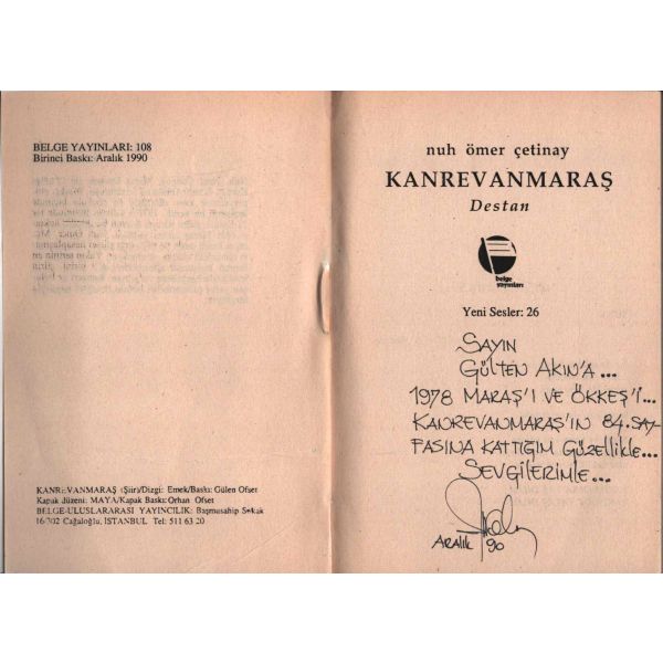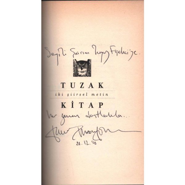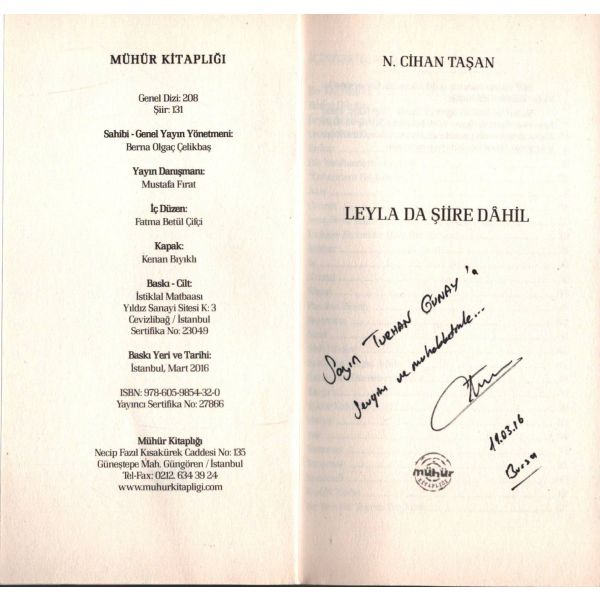 İthaf, " Sayın Turhan Günay´a sevgim ve muhabbetimle... 11.03.16 Bursa" şeklindedir.