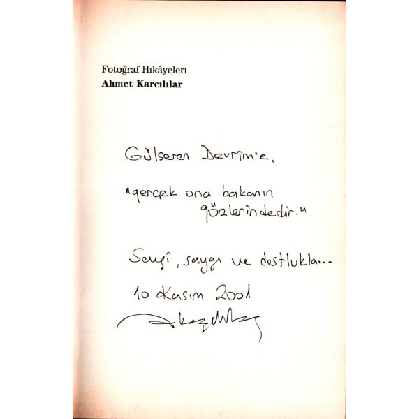 İthaf, " Gülseren Devrim´e, gerçek ona bakanın gözlerindedir. Sevgi, saygı ve dostlukla... 10 Kasım 2001" şeklindedir.