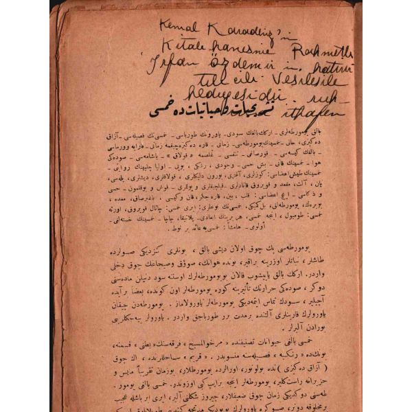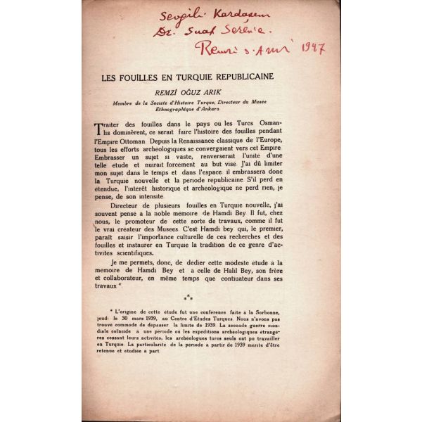 İthaf, " Sevgili kardaşım Dr. Suat Sezen´e. 1947" şeklindedir.