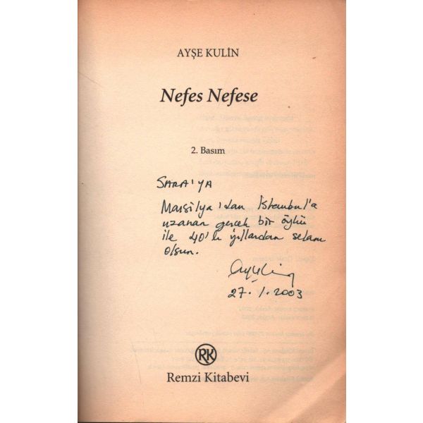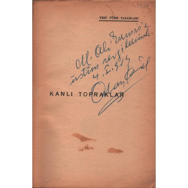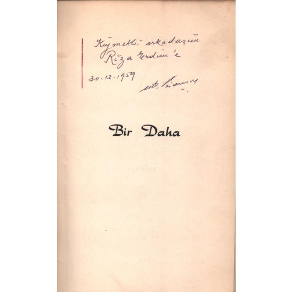 Yazar ve şair Halide Nusret Zorlutuna´ya yönelik hediye ithafı, muhtemelen yayınevi tarafından yazılmıştır.