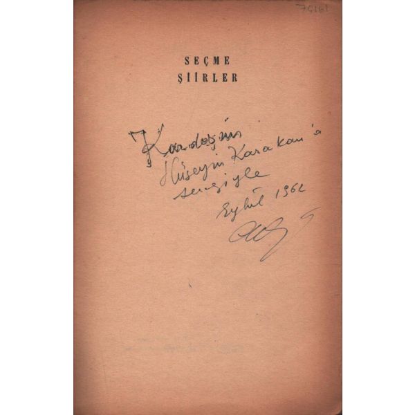 İthaf, " Kardeşim Hüseyin Karakam´a sevgiyle. Eylül 1962." şeklindedir.
