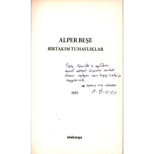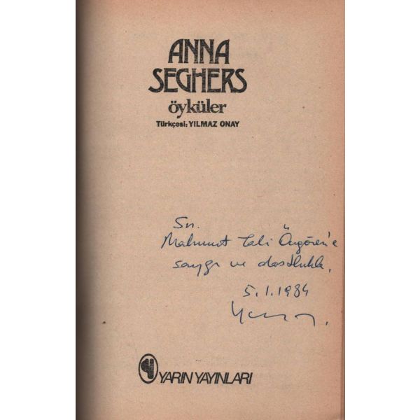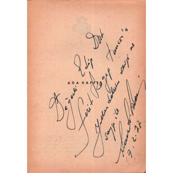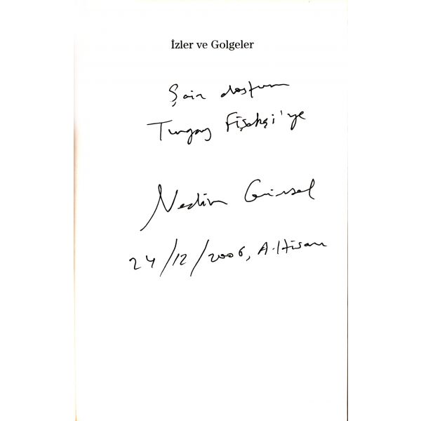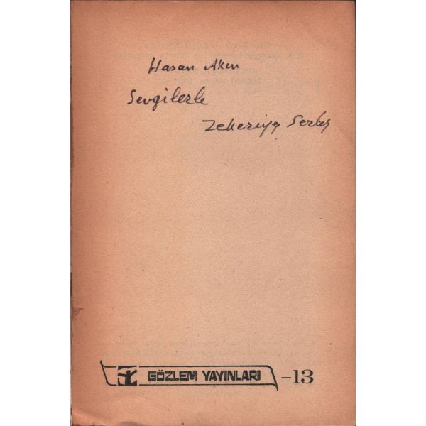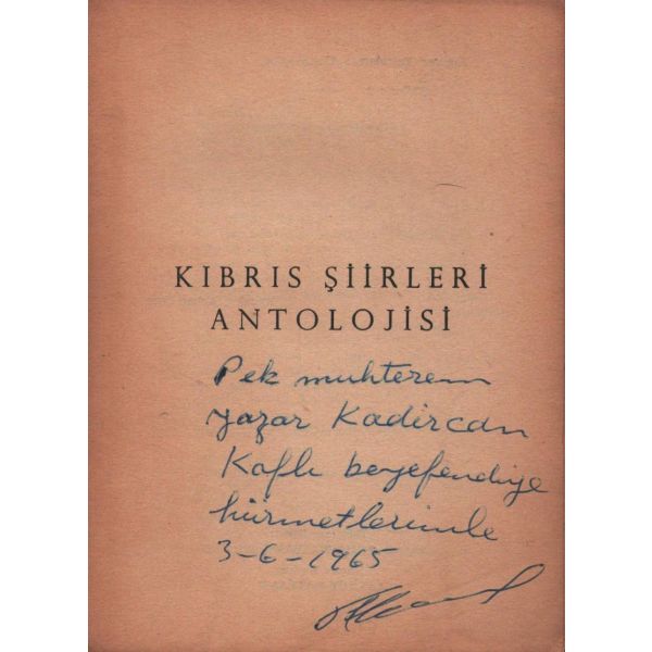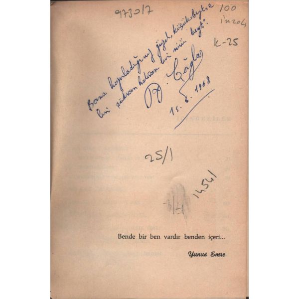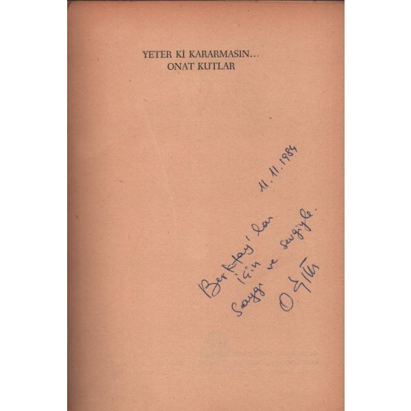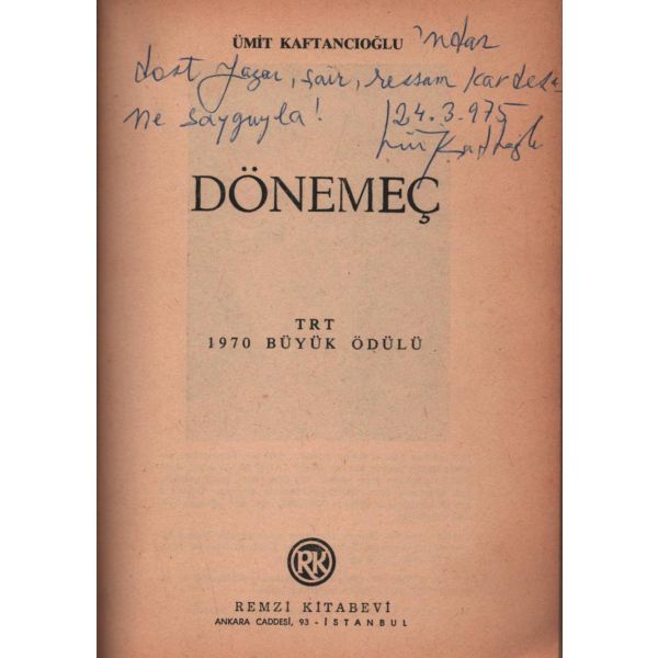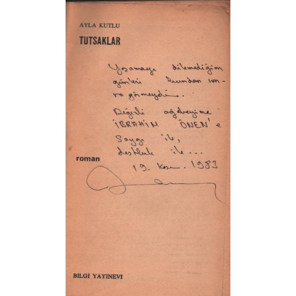 İthaf, " Ümit Kaftancıoğlu´ndan dost, yazar, şair, ressam kardeşine saygıyla! 24.3.975" şeklindedir.