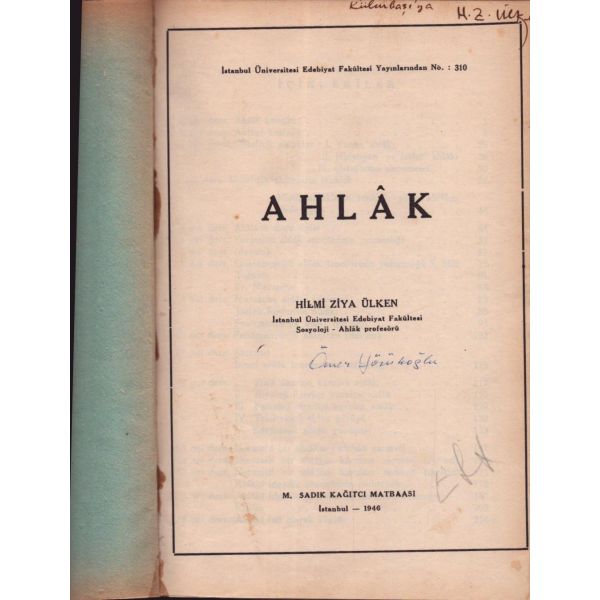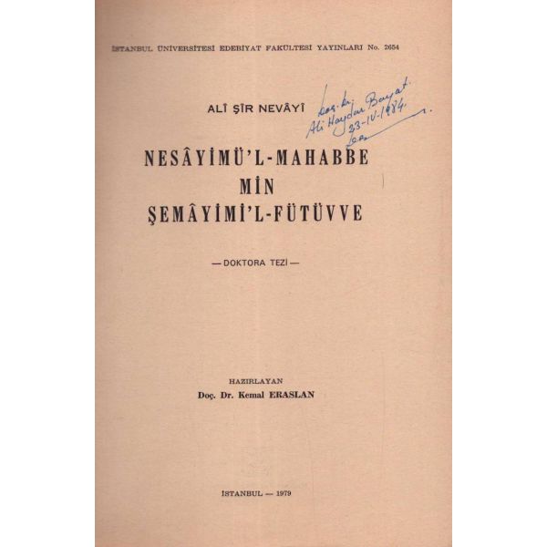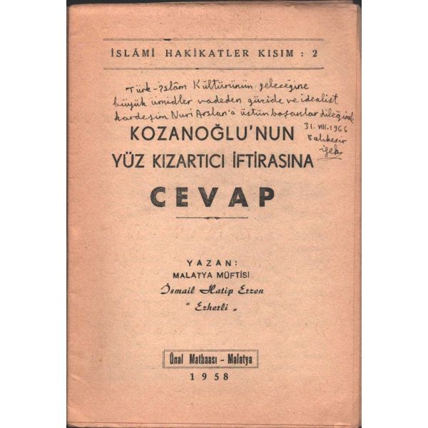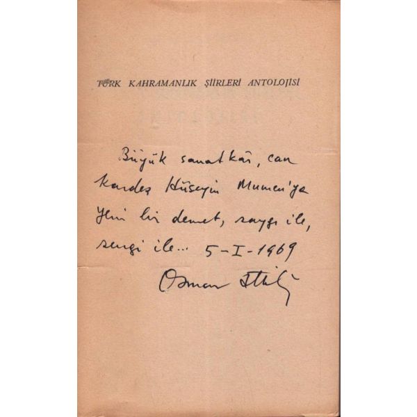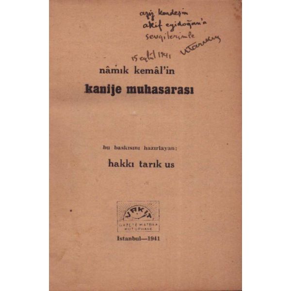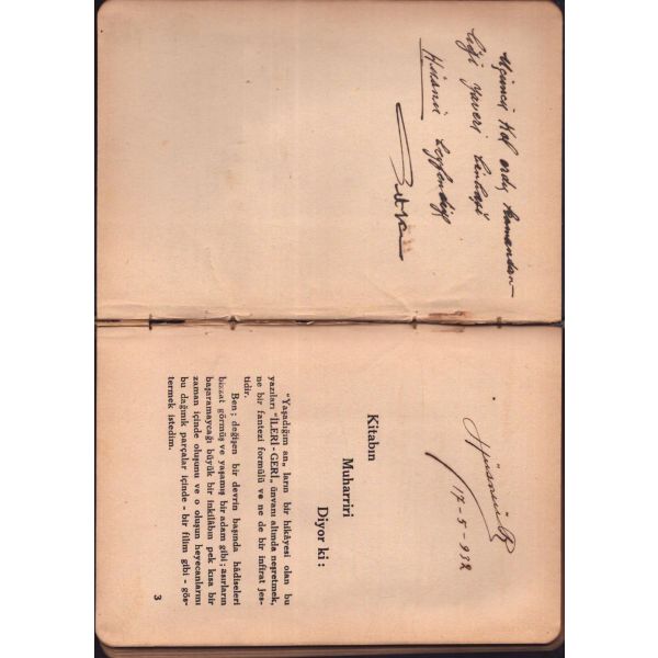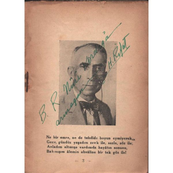 İthaf, " Üçüncü Kol ordu kumandanlığı yaveri binbaşı Hüsnü beyefendiye. " şeklindedir. * İçerisinde Hüsnü bey´e ait bir imza mevcuttur. * Bazı satırların altı çizilidir.